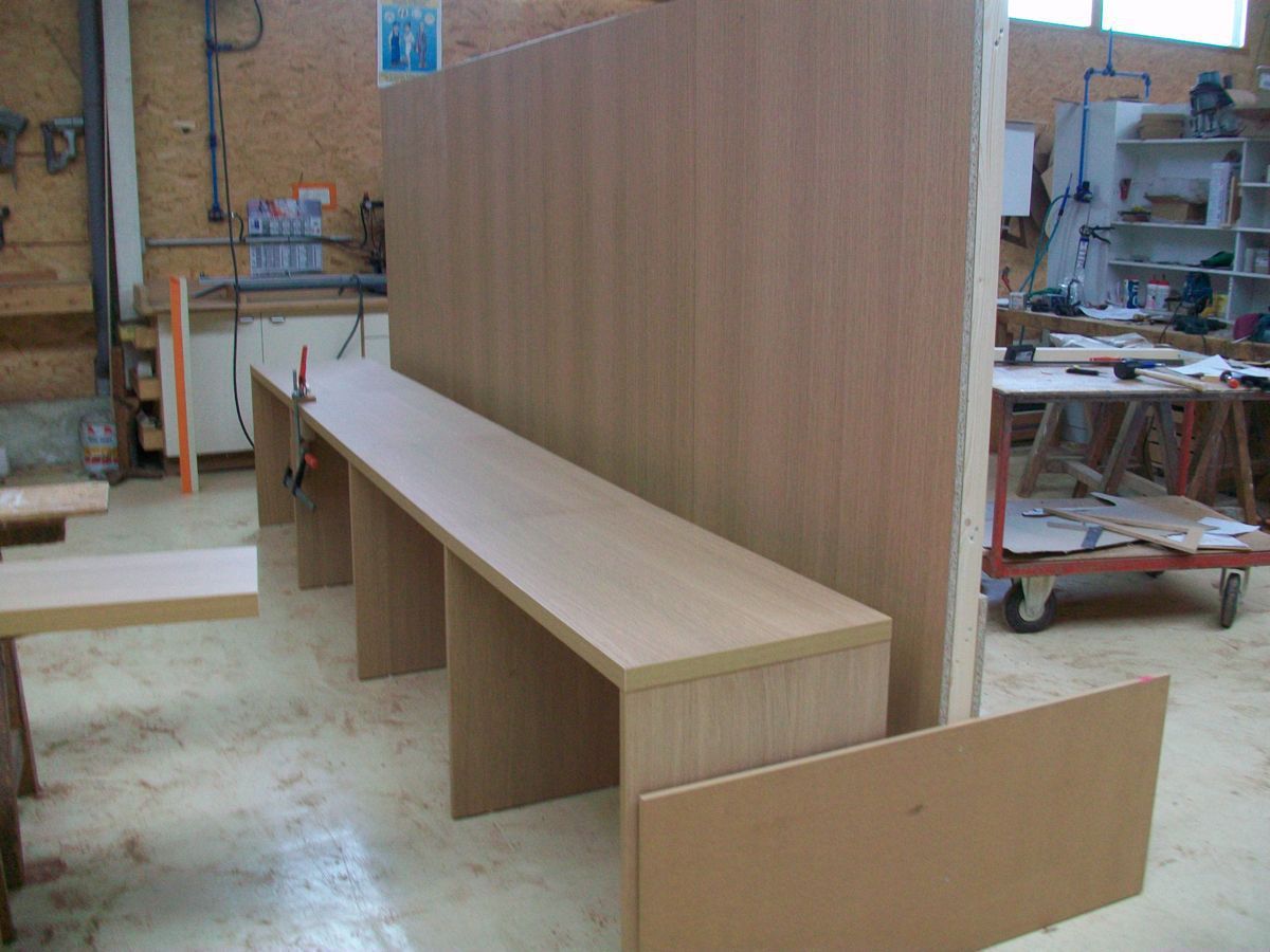 Fabriqués dans notre atelier et posés par nos soins, nos plafonds suspendus sont réalisés en lames de bois massives ou plaquées avec isolation acoustique pour gymnases et salles d’exposition. Nos habillages muraux se déclinent en panneaux mélaminés, stratifiés, plaqués bois, multiplis…